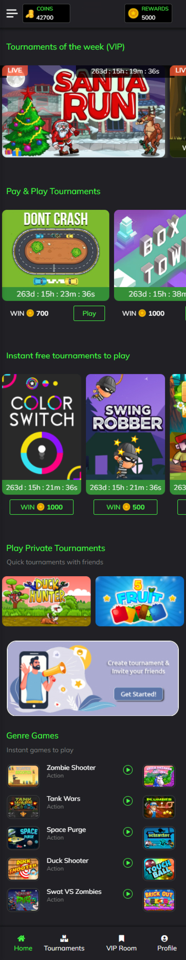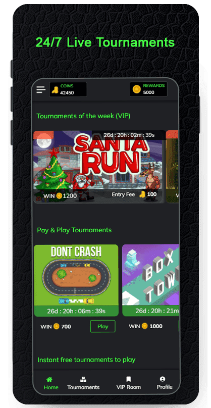 Access to 400+ games in practice zone Live Tournaments being configured on high score games.